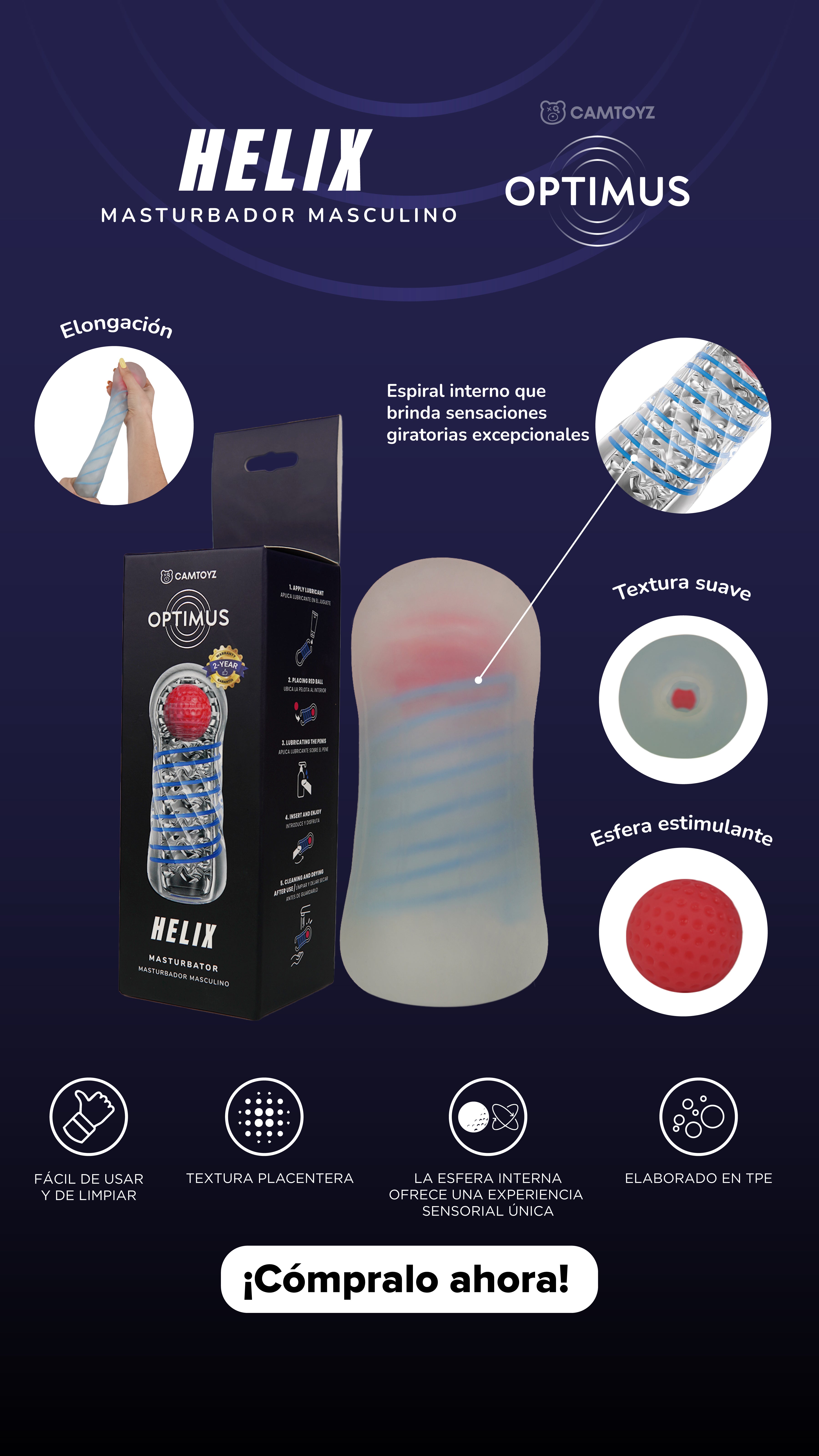 Parte de la exclusiva línea Helix de la marca Camtoyz, este masturbador combina diseño ergonómico con materiales de alta calidad, asegurando comodidad, durabilidad y una sensación increíble en cada uso. Es fácil de limpiar y perfecto para quienes buscan experimentar nuevas formas de liberar el estrés y alcanzar el placer máximo.
