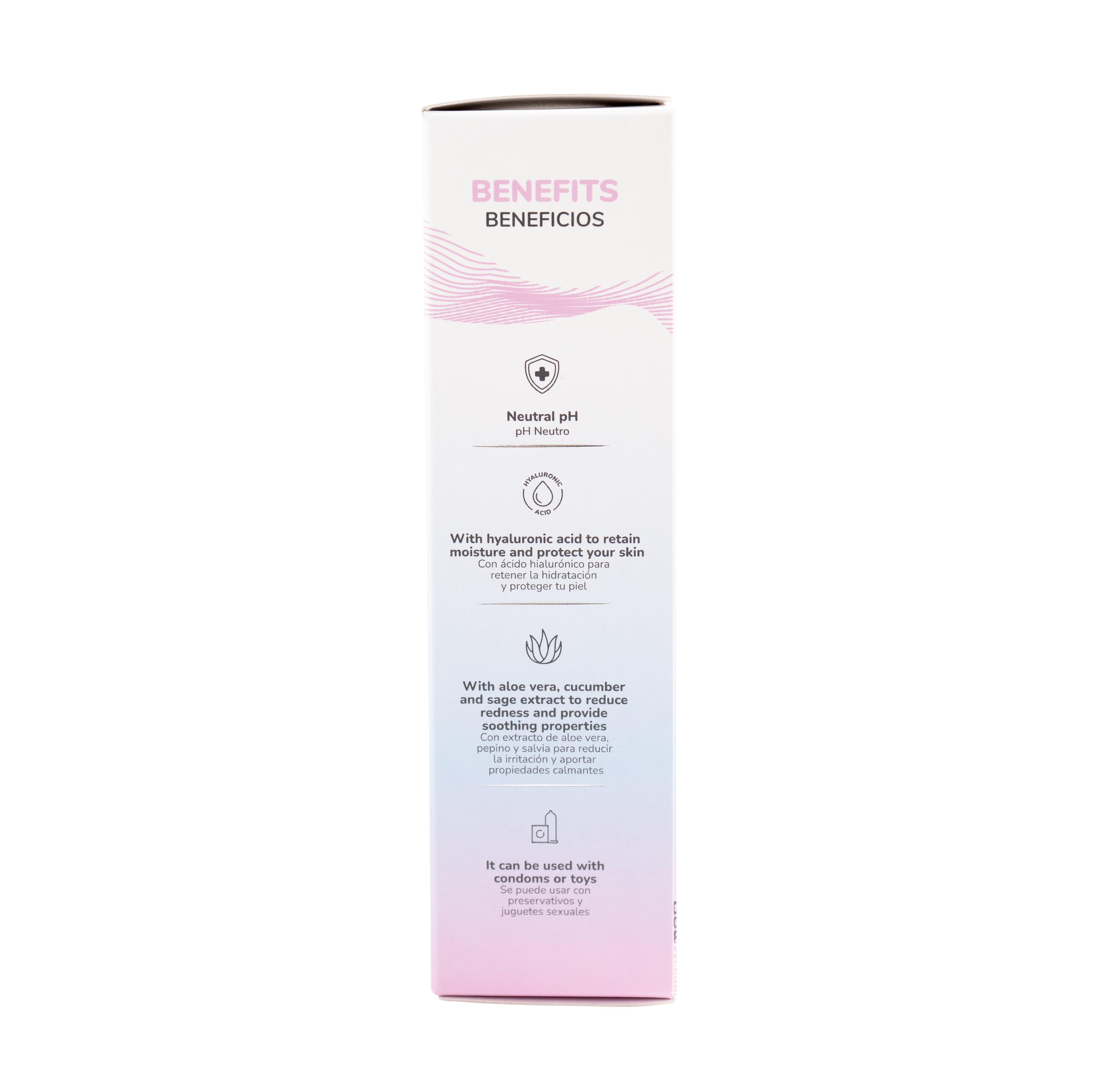 Formulado con ácido hialurónico, este lubricante retiene la humedad natural de la piel, ayudando a mantenerla hidratada y protegida durante más tiempo. Contiene aloe vera, reconocido por sus propiedades regeneradoras y calmantes, pepino, que aporta frescura y ayuda a reducir la sensación de irritación y salvia, con acción antioxidante y protectora, ideal para reforzar la barrera natural de la piel.